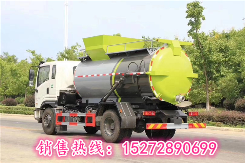 ②罐体内分上、下两层,下层为固液分离后污水收集箱,污水箱两头高,中间低,低端设有出水口,以保证污水排放干净。主要功能介绍:将桶装餐厨泔水垃圾经专用提升架缓缓上提,在车顶部倒入车厢内(车箱可分为箱体和罐体),被投放的垃圾经过强有力的推板挤压,在罐体内实现固液分离,被分离的液体进入罐体底部的污水箱,固体垃圾被压缩储存在罐体,体积变小,如此反复待装满后送到餐厨垃圾资源优化处理厂。 高配车型可以选装加热系统,称重系统,密闭排料系统,高压清洗设备。